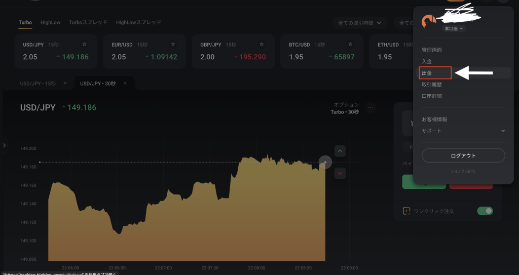 そこに【出金】があります(画像参照)