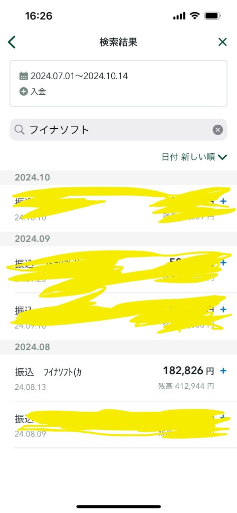着金したのは、火曜日の13日でした