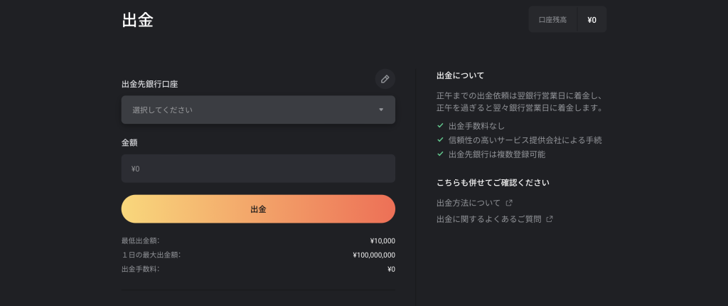 出金する際に手数料は一切かかりません!